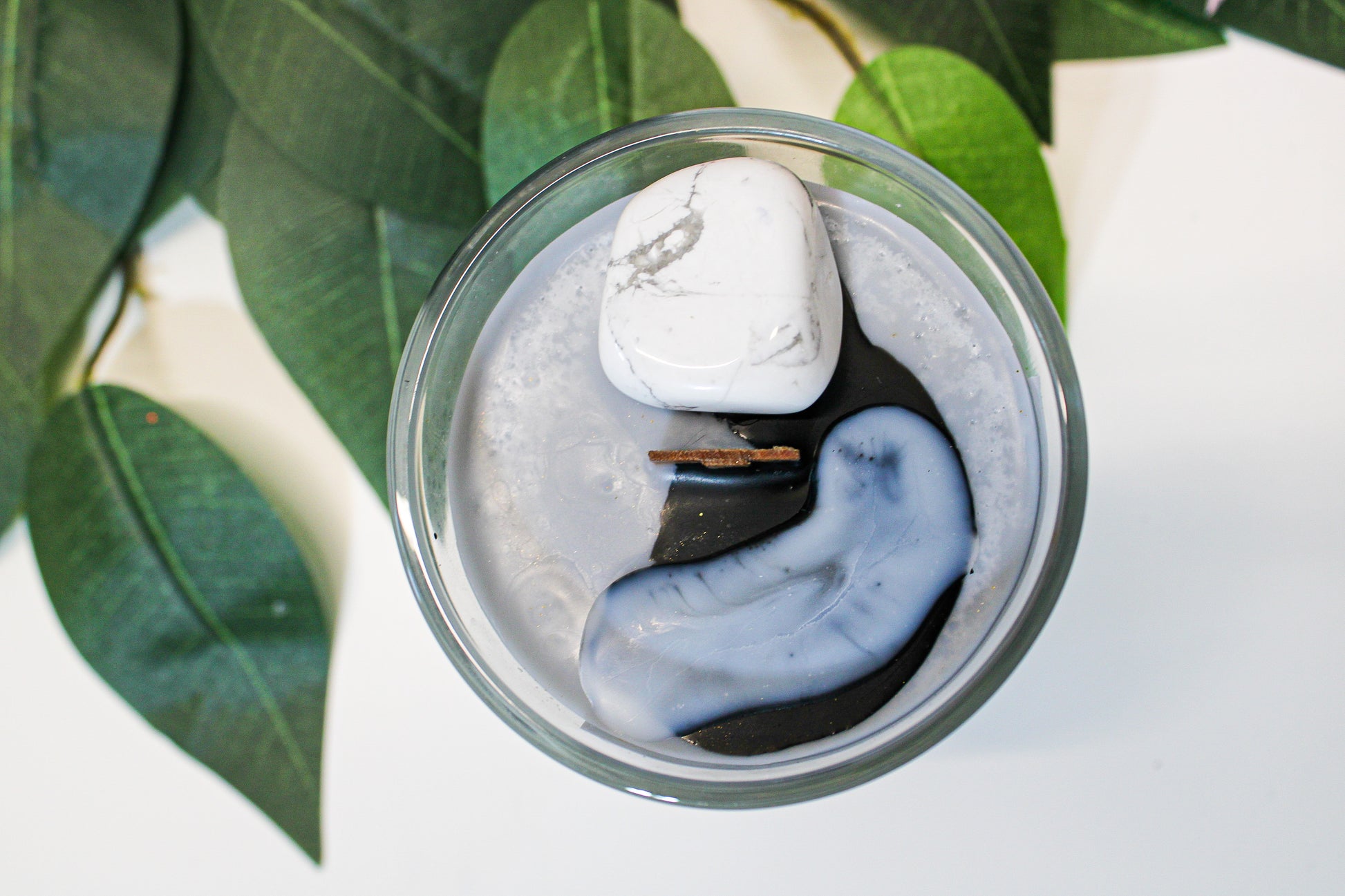 - Grey candle, black and white design on the top
