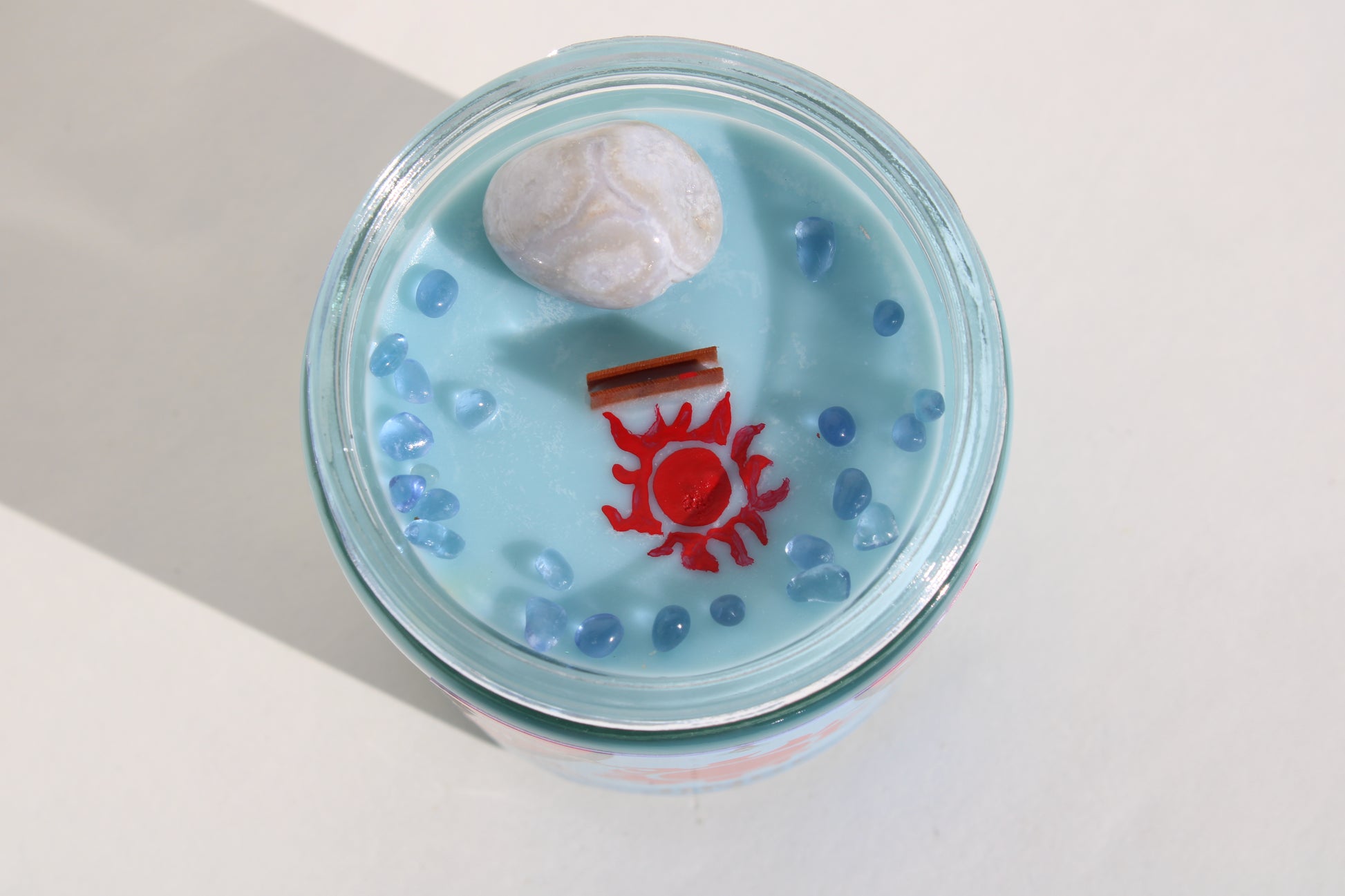 - blue chips, blue lace agate tumbled ( please take out before burn )